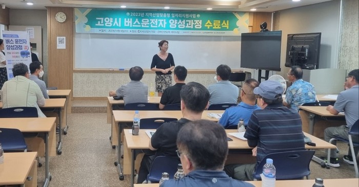 ‘고양시 버스운전자 양성과정’은 2023년 경기도 지역산업맞춤형 일자리창출 지원 사업으로 선정돼 추진되었으며, 시와의 협약을 통해 (사)고양시기업·경제인연합회에서 운영한다. 지난 7월부터 3주간의 실무교육을 진행했으며, 교육생 34명 전원이 수료하는 성과를 냈다.