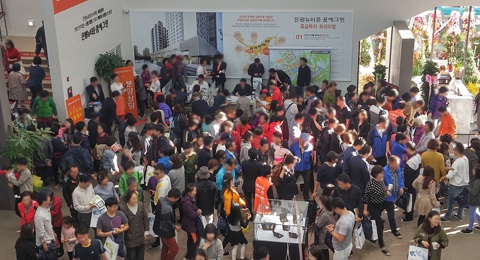 △ 한화건설이 이달 7일과 8일 서울 은평뉴타운 상업4블록에 들어서는 '은평뉴타운 꿈에그린' 고객감사 이벤트를 진행한다. 사진은 한화건설 모델하우스에 운집한 고객 모습<사진제공=한화건설>
