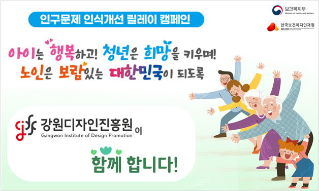 최인숙 강원디자인진흥원장(이하 ‘원장’)이 저출산·고령화 등 인구 구조 변화에 대한 사회적 인식을 개선하기 위해 3월 25일 ‘인구문제 인식 개선 릴레이 캠페인’에 동참했다.