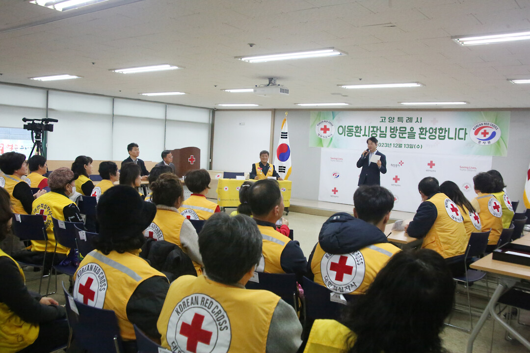 이날 대한적십자사 봉사회 고양지구협의회 박진수회장외 30여명이 고양특례시 이동환시장에게 투철한 사명감과 봉사정신으로 고양시와 108만 고양시민을 위해 헌신하셨으며, 적극적인 공익활동으로 우리 시 번영에 큰 힘을 보태어 지역발전에 이바지한 공이 크므로 고마운 마음을 담아 표창장을 전했다.
