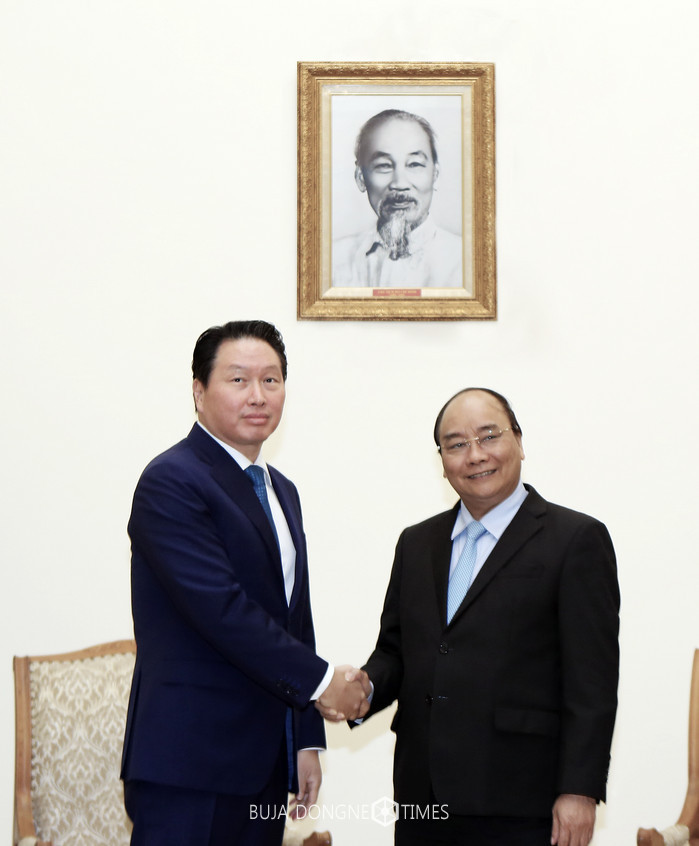 24일 SK그룹에 따르면 최 회장은 지난 23일(현지 시간) 베트남 하노이에서 응웬 쑤언 푹(Nguyen Xuan Phuc·63) 베트남 총리를 만나 "베트남 성장 전략과 연계해 함께 성장할 수 있는 협력 기반을 만들었으면 한다"고 말했다.