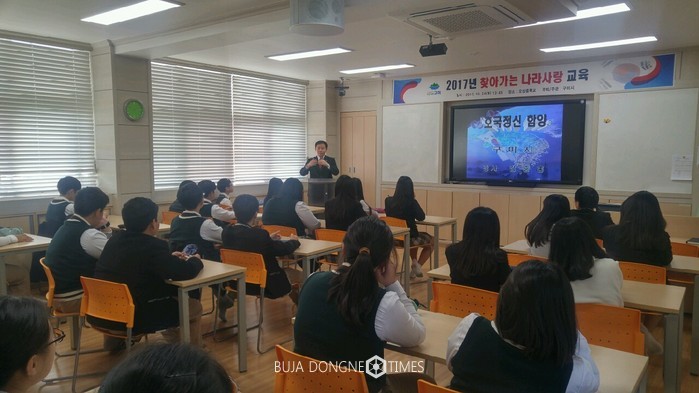 [부자동네타임즈 서소민 기자]구미시에서는 지난 10월 27일부터 11월 22일까지 관내 초, 중, 고등학생 및 대학생 1,150명을 대상으로 「2017년 찾아가는 나라사랑 교육」을 실시하였다.