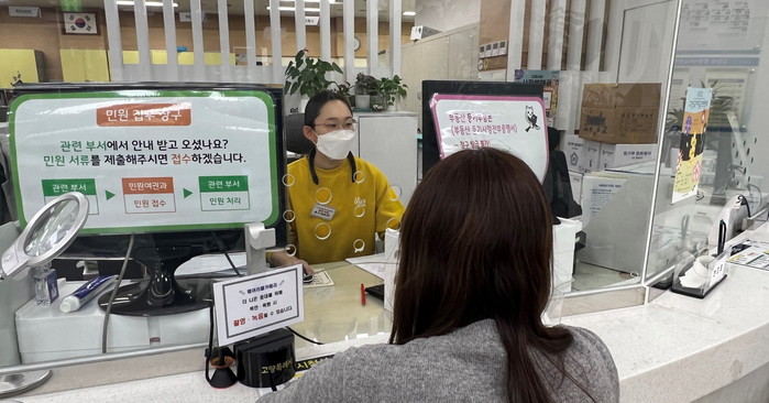 [사진설명] 담당 공무원이 휴대용 보호장비를 착용하고 민원을 응대하고 있다.