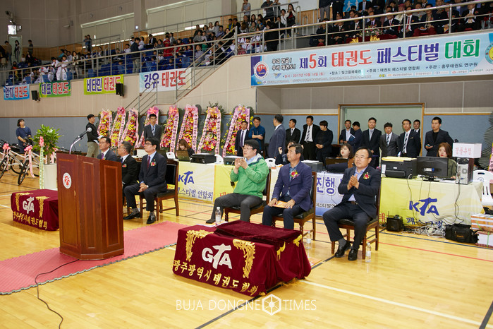 2017년 10월 15일(토) 광주시 염주체육관 내 빛고을체육관에서 태권도페스티벌연합회(회장 이동오)가 주체한 제5회 태권도페스티발대회가 여러 귀빈들과 수련생, 학부모 등 1천 800여 명이 참가한 가운데 '공인품새'와 '줄넘기'대회가 성대히 진행되었다.