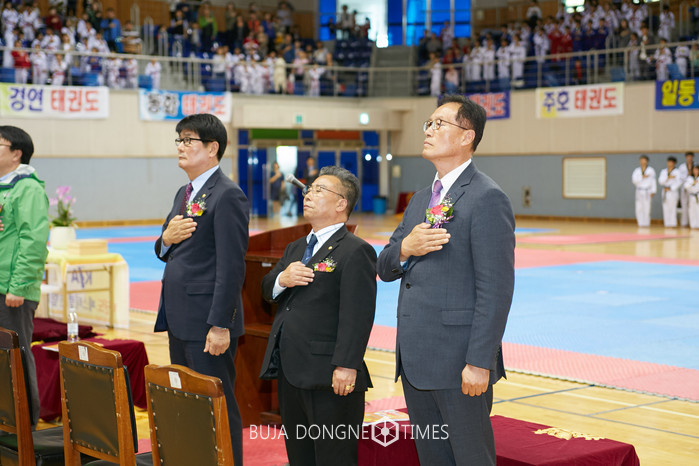 14일 오후 빛고을 체육관에서 열린 제5회 태권도페스티벌대회 개회식에서 이동오 회장 및 귀빈들이 참석하여 축하하는 가운데 국민의례를 시작으로 대행사를 시작하였다.