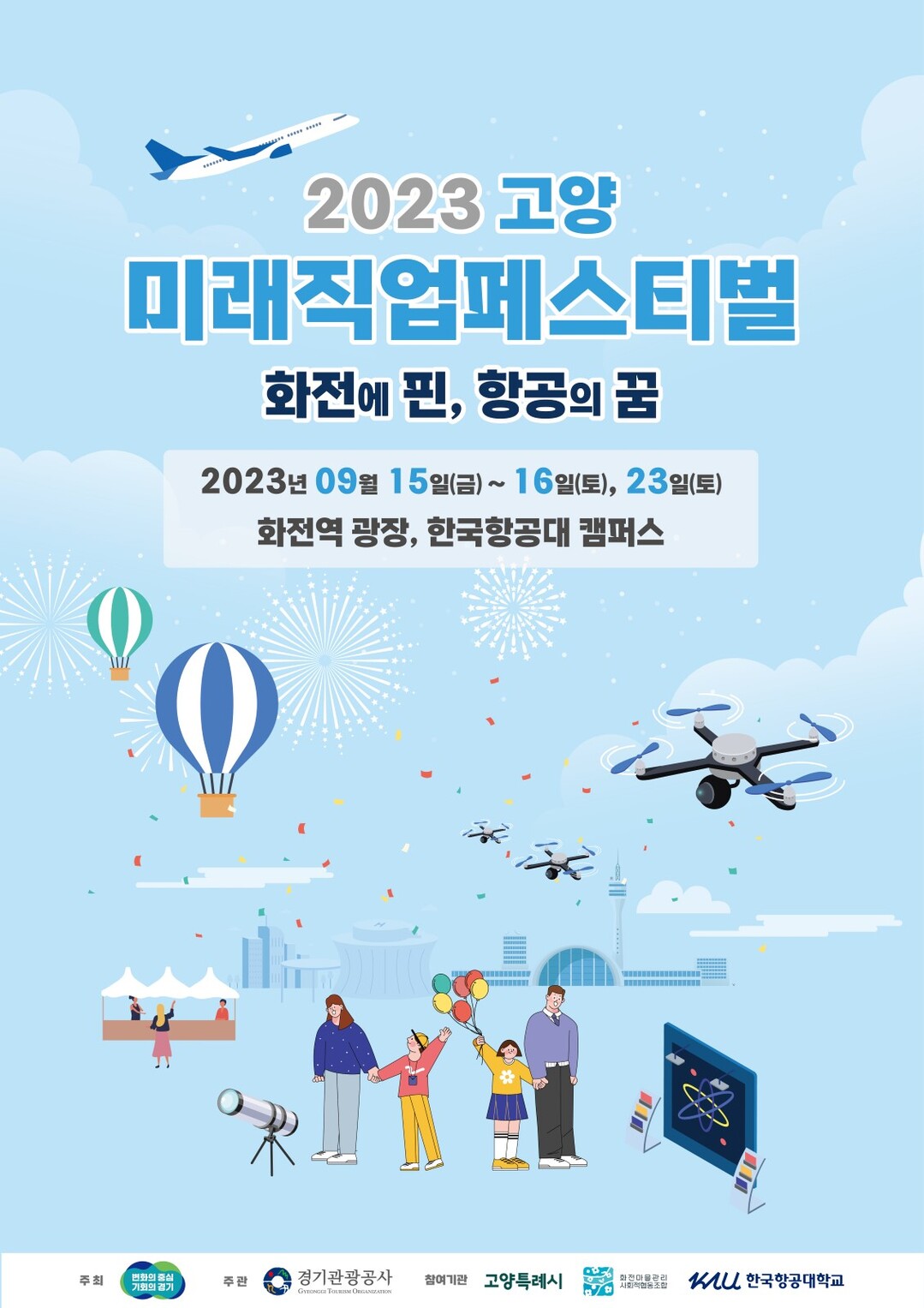 ‘고양 미래직업 페스티벌’은 고양특례시가 2023년 경기도 역사문화생태 관광 융복합 콘텐츠 개발 공모에 선정되어 추진하는 사업이다. 경기관광공사, 한국항공대와 화전마을공동체가 공동으로 축제를 운영한다.