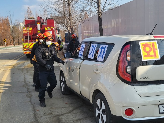 주요 훈련으로는 ▲전기차 사고 구조 훈련 ▲재난 상황 발생시 재난안전통신망 활용, 상호 1:1 연락을 통한 협업 훈련이 이뤄졌다. 훈련은 차량이 정체된 상황에서 경찰관의 도로 통제, 소방서의 구조 활동, 고양시의 제설 차량 운용 등 각 기관이 협업하는 방식으로 진행됐다.