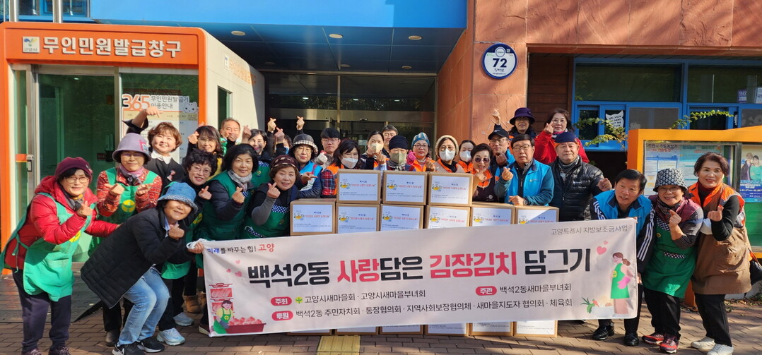 [부자동네타임즈 = 김인수 기자] 고양특례시 백석2동 새마을부녀회는 동절기를 맞아 지난 13일과 14일 양일간 소외된 이웃들을 위한 ‘사랑의 김장 나눔’행사를 진행했다.
