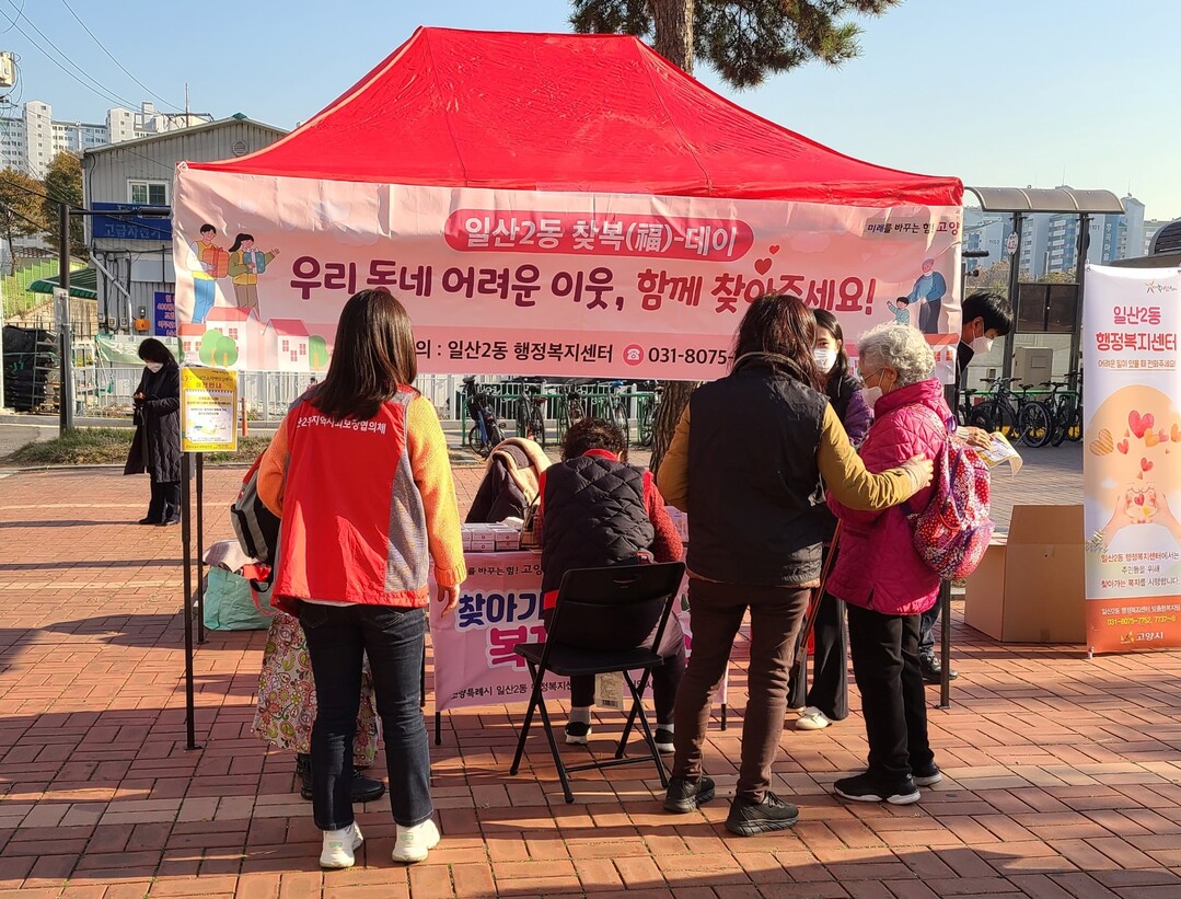[부자동네타임즈 = 김인수 기자] 고양시 일산2동(동장 강경아)과 지역사회보장협의체(위원장 박순자)는 2023년 하반기 복지사각지대 발굴 주간 ‘찾복데이’를 운영하며 지난 21일 일산서구보건소 치매안심센터와 함께 찾아가는 복지상담소를 운영했다.