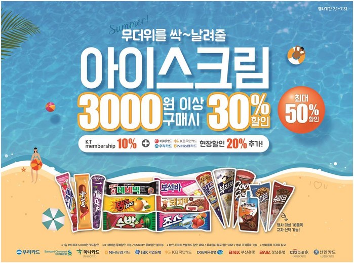 먼저, 이마트24는 아이스크림 3,000원 이상 구매 시 판매가의 최대 50%까지 할인해주는 아이스크림 할인 행사를 7월 한 달 내내 진행한다.