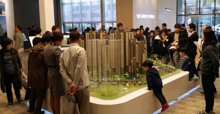 △ 현대산업개발과 삼성물산이 분양하는 반포 래미안 아이파크 모델하우스를 찾은 고객들이 견본주태을 꼼꼼하게 살펴보고 있다. <사진제공=현대산업개발>