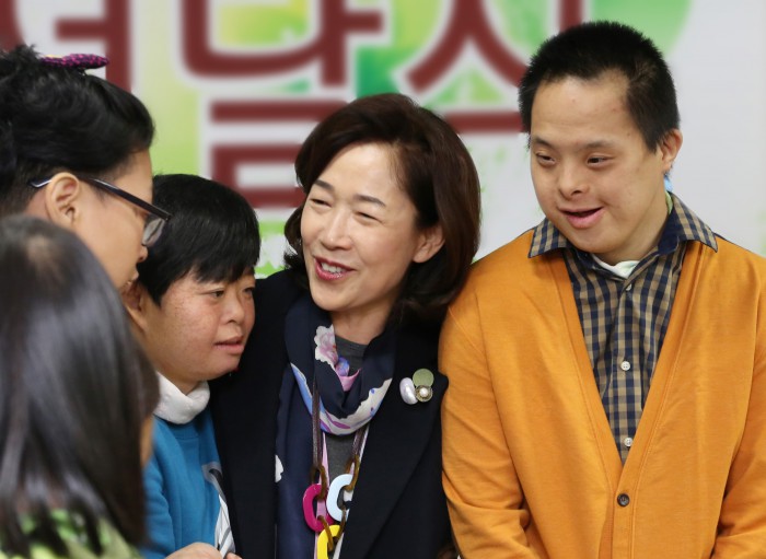 | △ 이어룡 대신금융그룹 회장이 전남 자주에 있는 지체장애인 보육시설인 계산원을 방문해 장애우들을 격려하고 있다. <사진제공=대신금융그룹> |