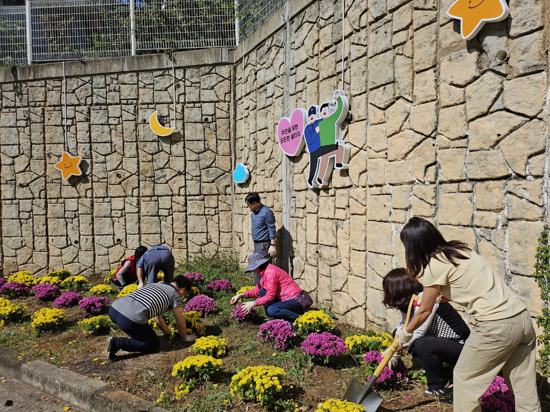 정조윤 중산1동 1통장은 “구슬땀 흘려가며 삽과 호미로 흙을 파내 국화를 심고 중산마을약수터에서 물을 길어와 물주기까지 마치고 나니 몸은 고단해도 예쁜 꽃동네 만들기에 도움이 됐다는 생각에 뿌듯하다”고 말했다.