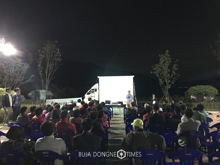 [부자동네타임즈 이세제 기자]밀양시 청도면 행정복지센터(면장 박용핵)는 29일 오후 7시, 밀양 숲속마을 청도어울림마당에서 주민 50여명이 참여한 가운데 찾아가는 영화관 ‘별보고 영화보고(영화: 수상한 그녀)’를 운영해 큰 호응을 얻었다.