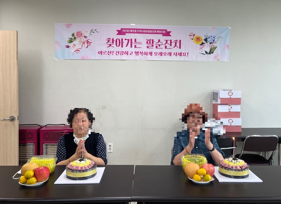 ‘해피데이, 팔순데이!’는 흥도동 지역사회보장협의체 특화사업이다. 기초생활수급자 및 차상위 계층 대상자 중 올해 팔순을 맞은 1943년생 어르신을 대상으로 생일 잔칫상을 차려드리고 위원들과 함께 축하 인사를 나누며 선물을 전달하는 소박한 팔순 행사이다.