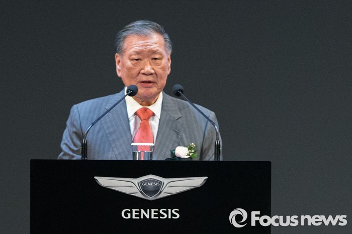 △ 이달 9일 오후 서울 용산구 그랜드하얏트 호텔에서 열린 현대자동차 '제네시스 EQ900' 신차 발표회에서 정몽구 현대자동차그룹 회장이 인사말을 하고 있다. <사진제공=포커스뉴스>