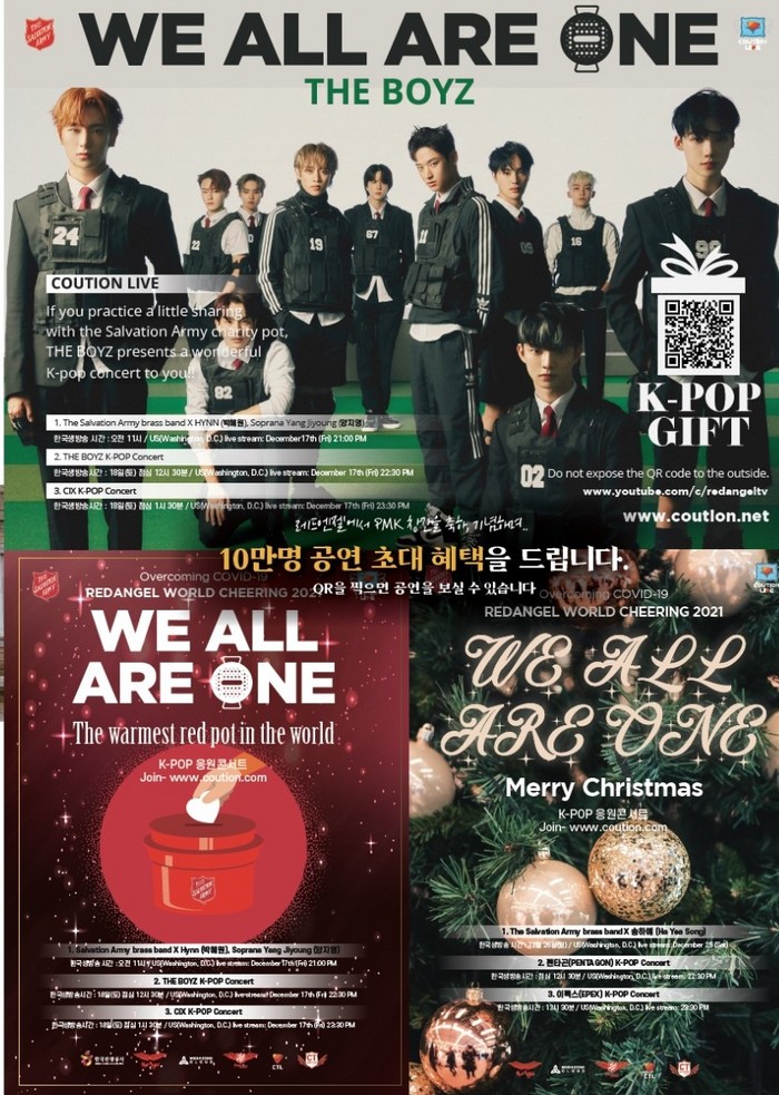 매거진에 있는 '위 올 아 원(WE ALL ARE ONE)' 큐알 초대권은 12월 18일과 26일 '구세군 브라스밴드, 더보이즈, CIX, 펜타곤, 이펙스' 등이 출연하는 공연을 온라인 생방송으로 감상할 수 있다.