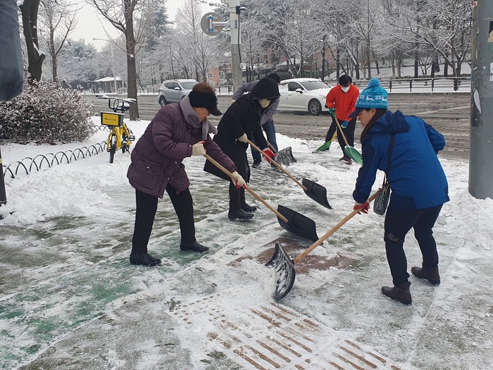 또한, 제설봉사단은 간선도로 상 보행로 외에도 제설차량 진입이 어려운 좁은 이면도로와 인도 등 제설 취약구역에 중점적으로 제설작업을 실시하여 관내 제설작업에 큰 힘을 보탰다. 특히 가파른 계단으로 보행자의 안전사고 위험이 가장 큰 밤가시육교의 제설작업도 신속하게 마무리했다.