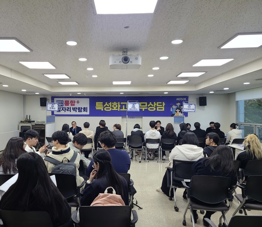 [부자동네타임즈 = 김인수 기자] 지난 7일에 개최한‘2023 고양시 통합일자리박람회’에서 관내 특성화고 직무상담존을 운영했다. 관내 특성화고 5개교에서 학생 100여명이 직무상담존에 참여했다.