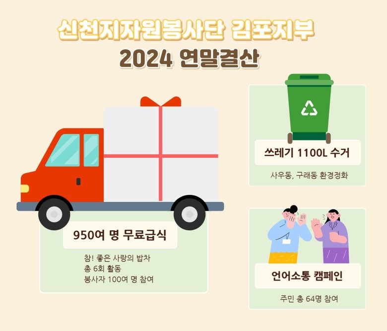 ▲올 한 해 신천지자원봉사단 김포지부의 활동 종합 인포그래픽 이미지 [사진 제공 = 신천지자원봉사단 김포지부]