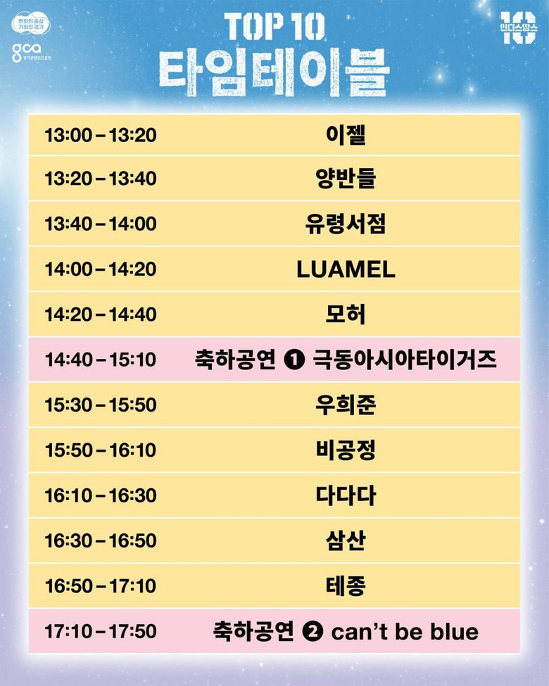 ‘인디스땅스 2025’는 지난 4월 참가자 모집을 시작으로, 영상 심사와 예선 경연을 거쳐 최종 본선 진출자 10개 팀을 선정했다. 본선 무대에 오를 팀은 ▲비공정 ▲다다다(DADADA) ▲삼산 ▲유령서점 ▲양반들 ▲LUAMEL(루아멜) ▲모허 ▲우희준 ▲테종 ▲이젤(EJel)로, 각 팀은 자신만의 음악성과 독창적인 퍼포먼스를 통해 경연에 나설 계획이다.