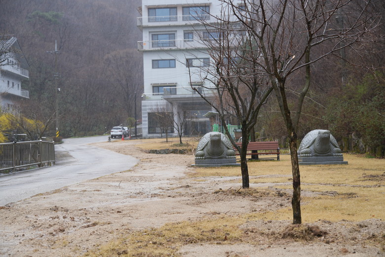 (사진=삼방사 부지 내 앞 마당이 모래로 덮혀 있다)