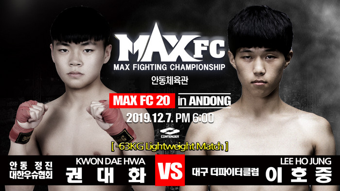 한편 MAX FC 20은 12월 7일 경상북도 안동시 안동체육관에서 개최되며, TV스포츠채널 IB 스포츠와 네이버 스포츠TV를 통해 오후 6시부터 생중계된다.