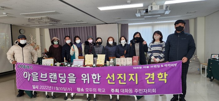 한편, 견학에 참여한 신태관 주민자치회 기획홍보분과장은 “이번 모두의학교 견학을 통해 대화동 고유정체성을 확립하고 대화동만의 차별화된 마을콘텐츠를 구축하기 위한 주민 맞춤형 마을브랜드화 사업을 구상하는 시간을 가질 수 있었던 것 같아 좋았다.”라고 소감을 밝혔다.
