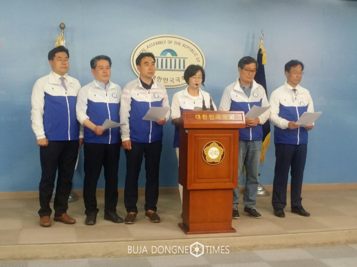 더불어민주당 인천·부천지역 국회의원 윤관석, 송영길, 홍영표, 신동근, 유동수, 박찬대, 원혜영, 설훈, 김상희, 김경협 인천과 부천시민을 모욕한 자유한국당은인천과 부천시민에게 석고대죄 하라!