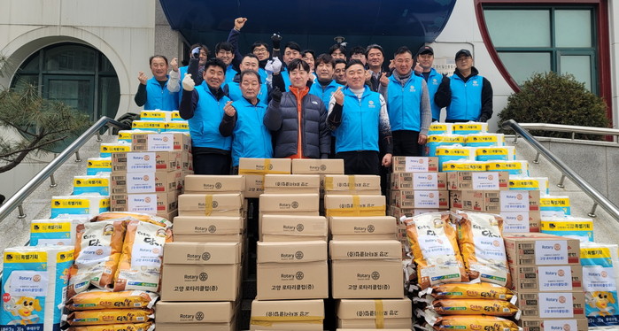 고양로타리클럽 후원으로 진행한 설 명절 나눔 행사는 생필품 선물 세트, 쌀(10kg), 휴지(30롤), 라면(30 개입) 각 50개를 준비해 관내 저소득·독거 어르신 50가정에 전달하는 행사였다.
