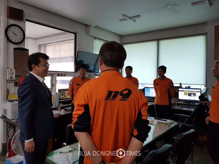 [부자동네타임즈 임홍빈 기자]복기왕 아산시장이 4일 민족고유의 명절 추석 당일 비상근무를 실시하고 있는 아산소방서를 비롯한 관내 주요 상황근무실을 방문해 따뜻한 격려와 함께 빈틈없는 운영을 부탁했다.