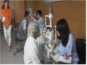 어르신들은 시력검사와 굴절검사, 안압검사, 세극등현미경(조명 광속의 폭과 길이를 변화시키며 관찰용 현미경으로 눈을 검사하는 기계)검사 등을 무료로 받는다.