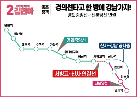 김영환 후보는 당시 경의선과 신분당선의 연결로 ‘강남가자’라는 슬로건을 내걸며 서울과의 접근성을 높이는 공약을 내세운바 있다.