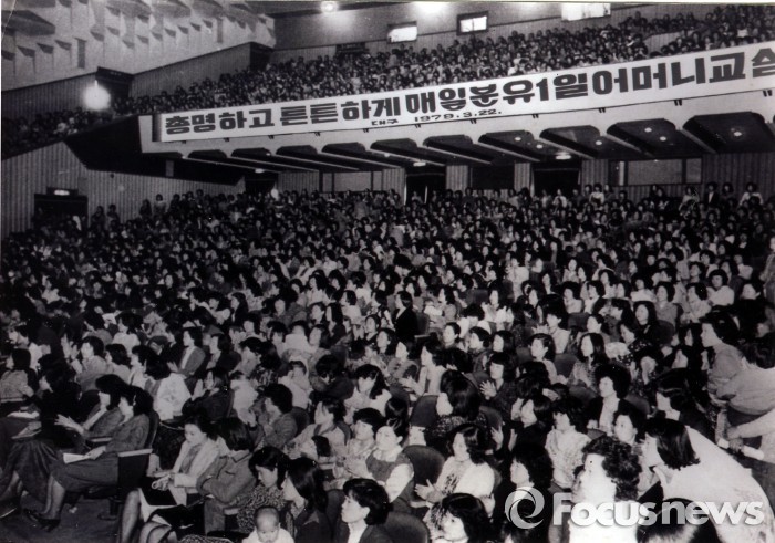 | △ 매일유업이 지난 1979년 대구에서 진행한 예비엄마교실(당시 1일 어머니교실)에 참여한 예비 엄마들이 강의를 듣고 있다. <사진제공=매일유업> |
