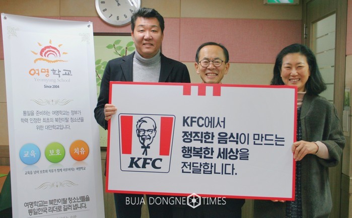 [부자동네타임즈 김현정 기자]글로벌 치킨 브랜드 KFC의 임직원들이 이달 초, 새해를 맞아 서울 중구 숭의여대 인근에 위치한 ‘여명학교’를 찾아 봉사활동을 펼쳤다고 밝혔다.