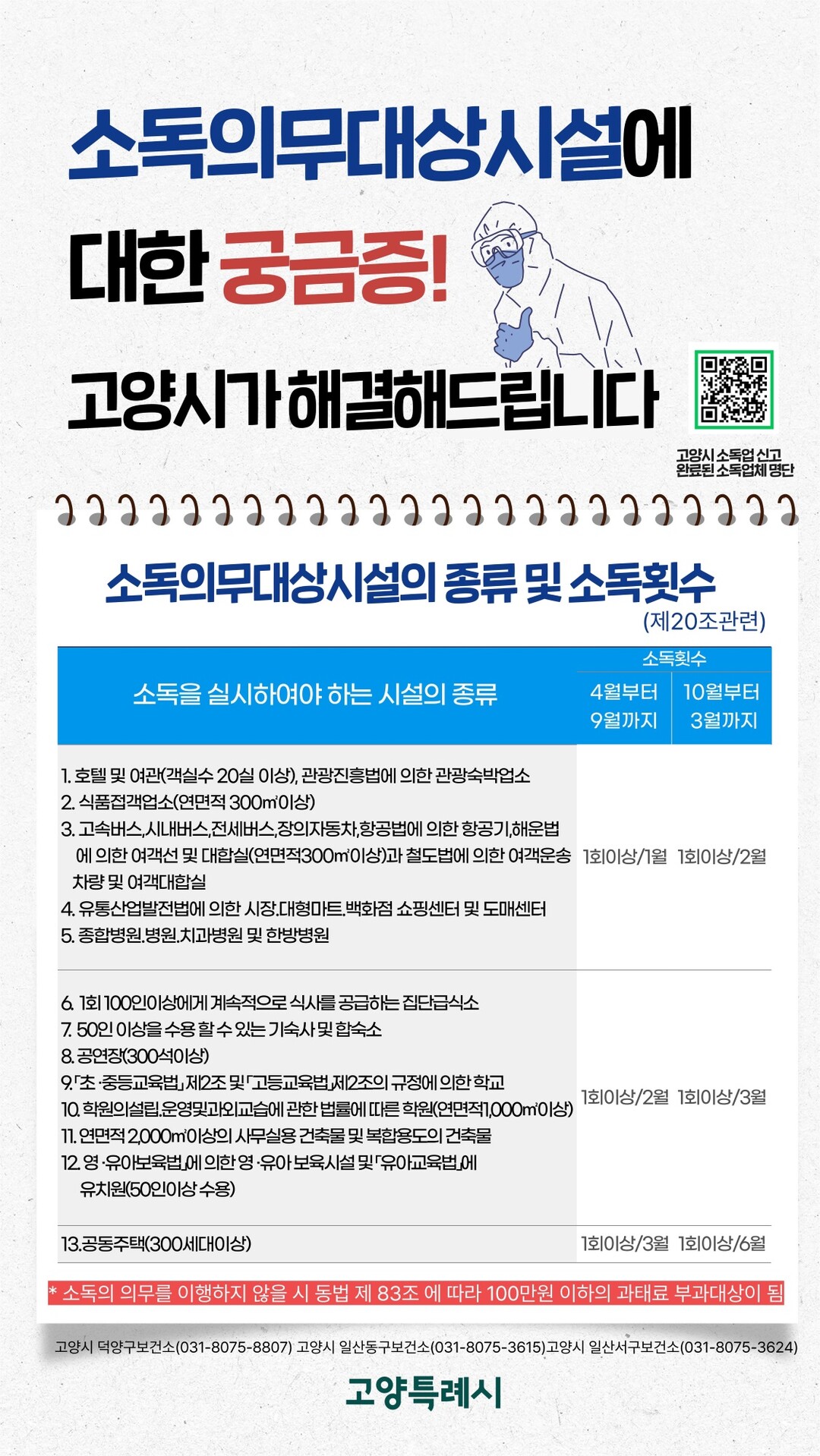 고양특례시, 소독의무대상시설 정기 소독 이행 당부.
