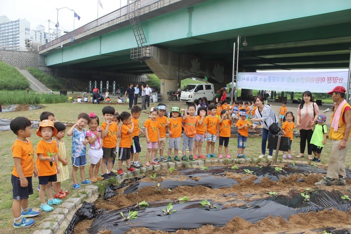 먼저 19일에는 안양천 둔치 오금교 북단에 있는 어린이 자연학습장(1,700㎡)에서 배추모종 식재 행사를 열었다.