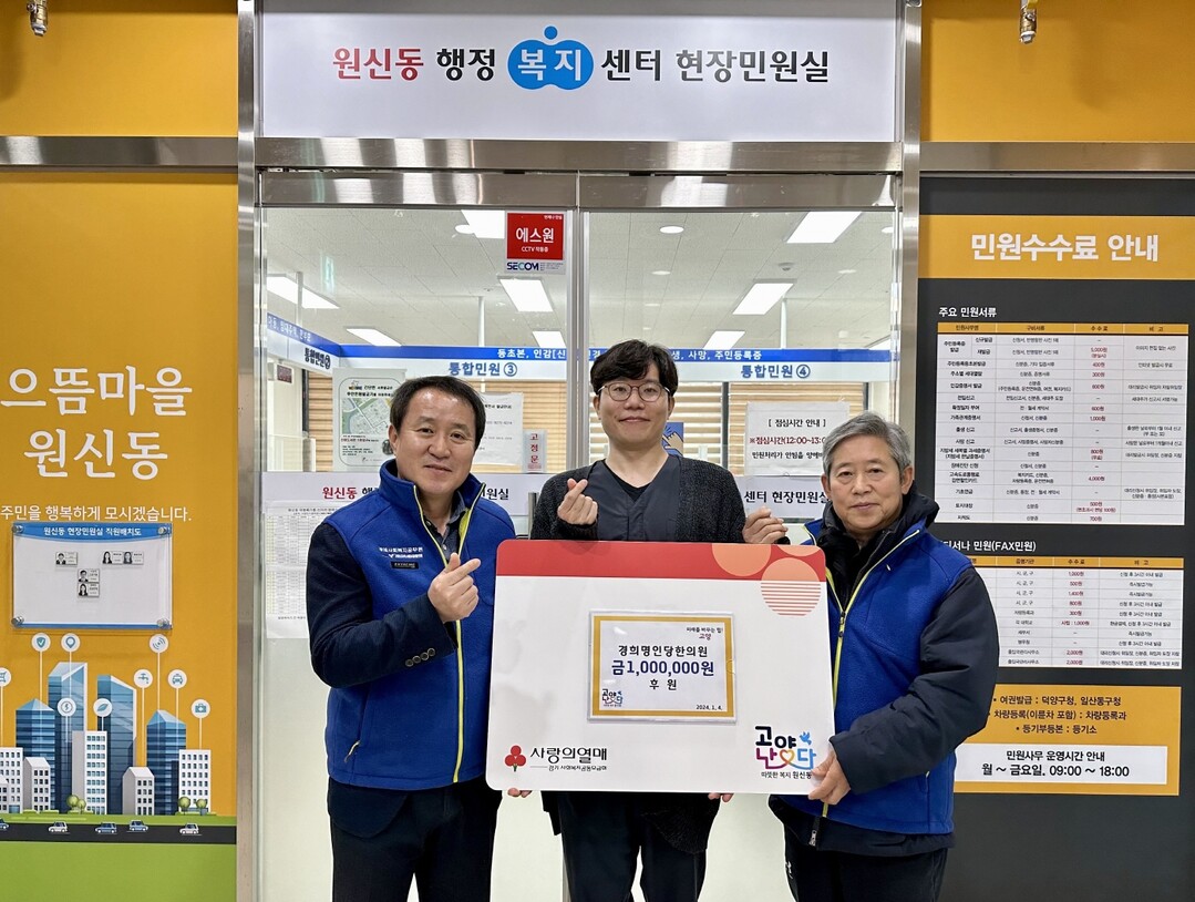 [부자동네타임즈 = 김인수 기자] 지난 4일 고양특례시 경희명인당한의원에서 갑진년 새해를 맞이하여 어려운 이웃을 위해 써 달라며 원신동 행정복지센터에 현금 1백만 원을 기탁했다.