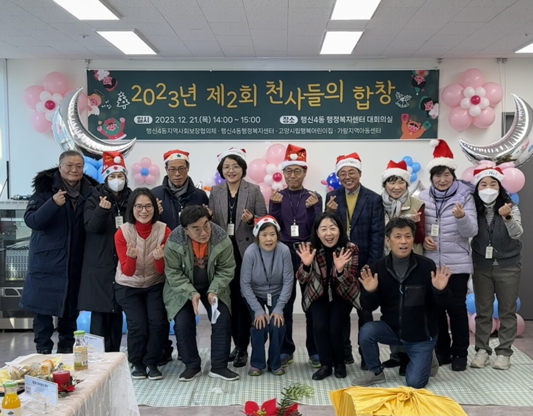 [부자동네타임즈 = 김인수 기자] 고양특례시 행신4동 지역사회보장협의체는 지난 21일 행신4동 행정복지센터 대회의실에서 관내 고양시립행복어린이집, 가람지역아동센터 아이들과 함께 ‘천사들의 합창’ 행사를 진행했다. 가족관계 단절로 외로운 연말을 보내고 있는 독거어르신 10명을 초대했으며, 아이들의 공연과 다과를 즐겼다.