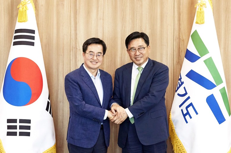 한국농수산식품유통공사 김춘진 사장은 25일 김동연 경기도지사를 만나 K-푸드 수출확대 방안에 대해 논의하는 자리를 가졌다.