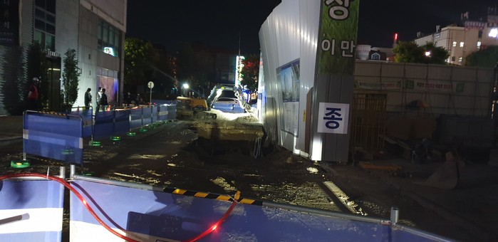 이날 싱크홀 원인은 오피스텔 신축현장에서 터파기 공사 도중 노후된 상수도관이 파열되고, 동시에 물과 함께 토사가 쓸려 나오면서 발생된 것으로 추정되고 있다.