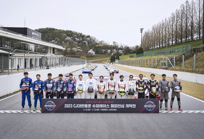 [사진 설명] 2023 CJ대한통운 슈퍼레이스 챔피언십 슈퍼 6000 클래스에 나설 드라이버가 사진 촬영에 나서고 있다.