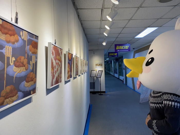 [사진설명] 청취다방 마스코트 DD가 작품을 감상하고 있다.