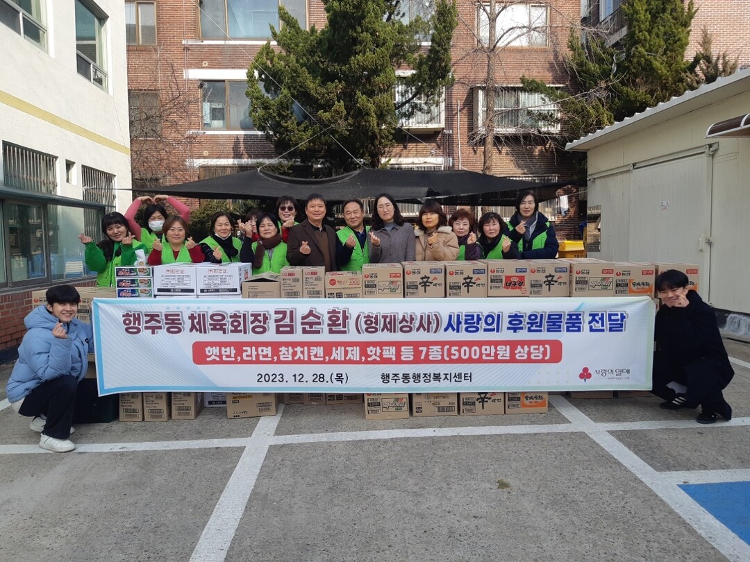 나눔에 참여한 형제상사(대표 이상원)는 행주동에서 생활용품 도소매업을 하고 있으며 김순환 회장과 함께 2021년부터 3년 연속 연말 후원물품을 행주동에 전달해 왔다.