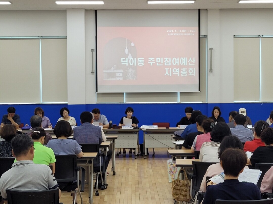 이라희솜 지역회의 의장은 “이번 회의는 덕이동에 꼭 필요한 사업이 무엇인지 고민할 수 있는 자리가 됐다. 우리 동 제안 사업이 많이 반영되어 주민들이 보다 살기 좋은 덕이동을 체감할 수 있길 바란다.”라고 전했다.