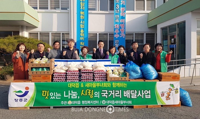 [부자동네타임즈 손권일 기자]장흥군 대덕읍(읍장 이재천)은 대덕읍 새마을부녀회(회장 서선희)와 함께 지난 27일 각 마을회관 및 경로당에 국거리 재료 배달을 했다고 전했다.