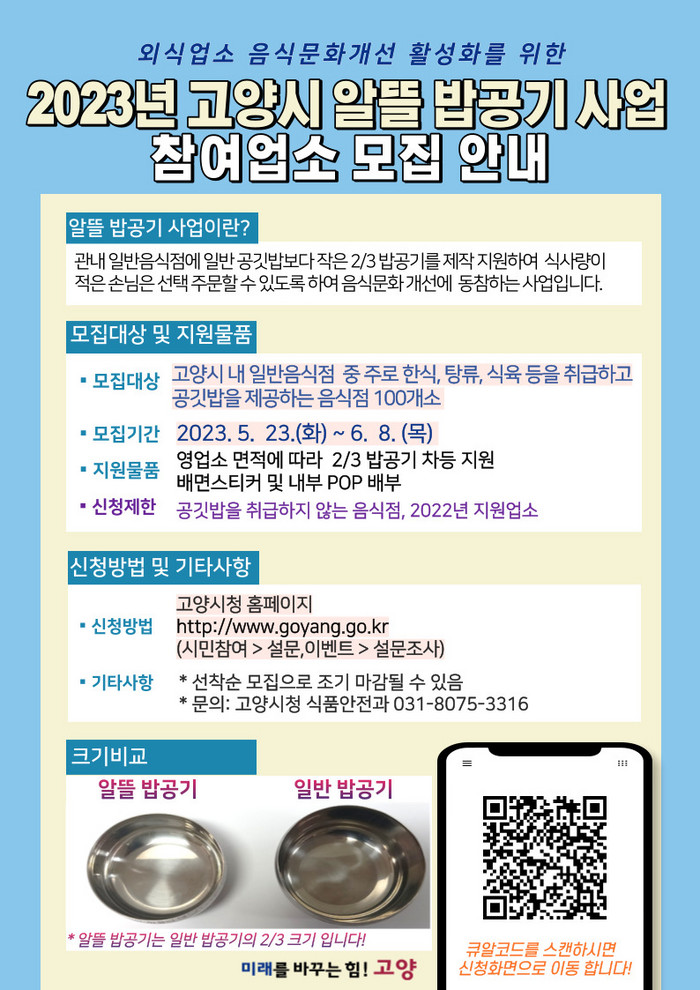 고양시, 2023년 알뜰 밥공기 지원 사업 운영.