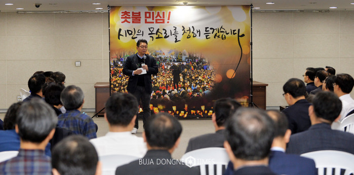 | △광주광역시는 외국인이나 새터민 자녀 등 해외에서 중도 입국한 학생들을 가르치는 대안학교인 새날학교 이천영 교장을 초청해 제5회 '시민의 목소리 청해 듣는 날'을 운영했다 |