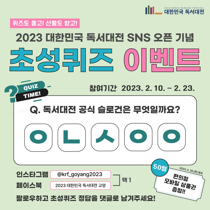 고양시, 2023 대한민국 독서대전 개최 기념 SNS 구독 이벤트 진행.