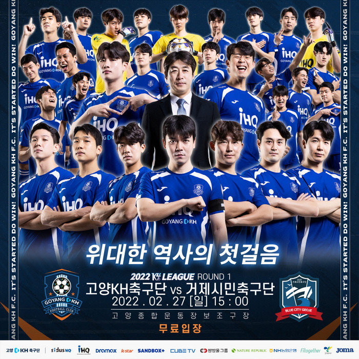 고양KH는 27일(일) 오후 3시 고양종합운동장 보조구장에서 거제시민축구단과 ‘2022 K4리그’ 1라운드를 치른다. 지난해 12월 창단식 이후 치르는 첫 공식 경기이자 창단 첫 경기다.